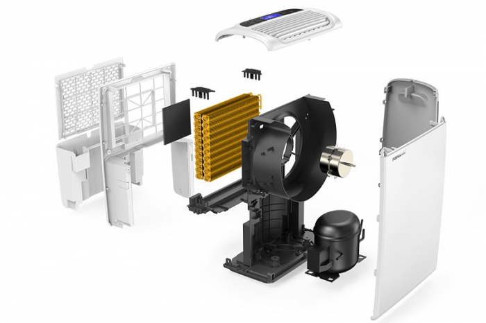 它首先采用的是轮转式的A设计理念,可将室内潮湿的空气大幅地吸入到机身内,然后通过机身内部核心部件——轮转加热器的作用,即可轻松循环往复地将潮湿空气中水分析出,换之以干爽的空气并最终通过位于机身上部的出风口源源不断地排出,使室内能达到一个舒适的环境,晾晒的衣物也会变得更加干爽,从源头去除湿气。
